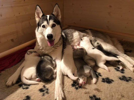 Lange haben wir auf unseren ersten Wurf gewartet. Und er hätte nicht besser ausfallen können. Es waren 7 Welpen, drei Rüden und vier Hündinnen. Aus diesem Wurf haben wir drei Welpen behalten. Die Nike`s LeBron, Tiempo und Blazer, zwei Rüden und eine Hündin. Sechs, der sieben Welpen laufen regelmässig im Lead oder alleine vor dem Bike. Es sind alles absolut fantastische und vor allem super liebe Hunde geworden, die ihren Besitzern sehr viel Freude bereiten.